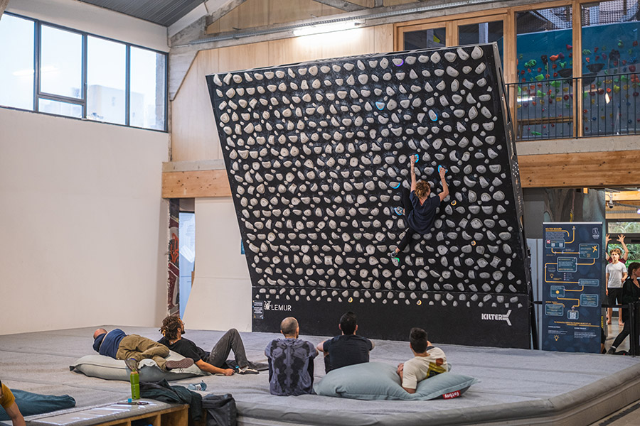 De l'escalade de bloc dans la Halle sud des Halles de la Cartoucherie