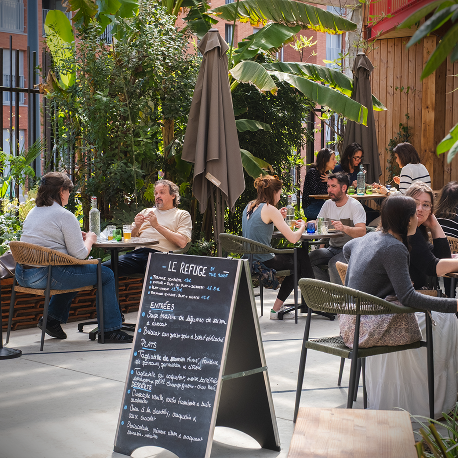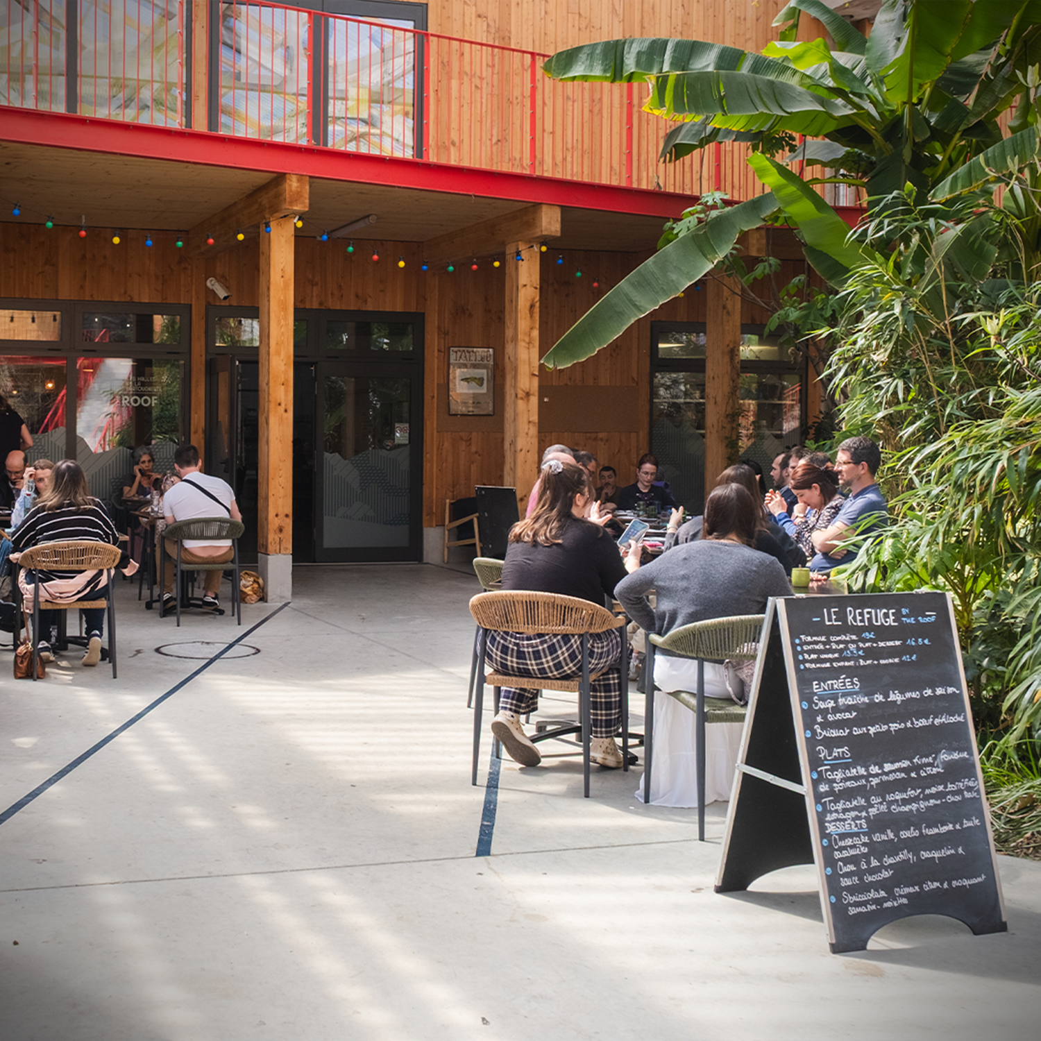 Une pause déjeuner saine, locale et convivialeAu Refuge by The Roof, la pause du midi rime avec fraîcheur et simplicité dans un lieu atypique au sein des Halles de la Cartoucherie.