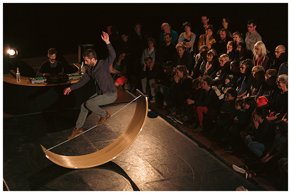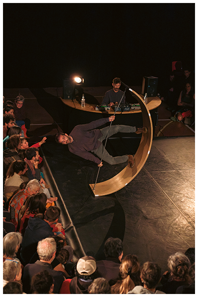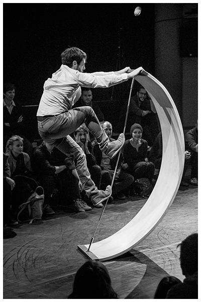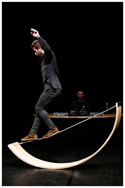 Le jeu acrobatique avec cette singulière structure de cirque ex- plore les volumes pour mettre en perspective un rapport ludique à la matière, à l’espace, à l’autre.